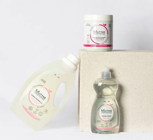 Mutyne, c'est la marque de produits d’entretien efficaces, éco-conçus et éthiques. Parce qu'elle ne réduit pas l'écologie à la naturalité, la amrque a éco-conçu ses produits via des analyses de cycle de vie afin de limiter les impacts sur l’environnement. Les produits formulés par ses soins avec passion, ne sont pas « sans ... » mais sont formulés « avec » les dernières innovations issues de la chimie du végétal pour en faire la gamme de produits d’entretien écologiques la plus efficaces du marché, et ainsi vous permettre d'en faire un usage écologique !